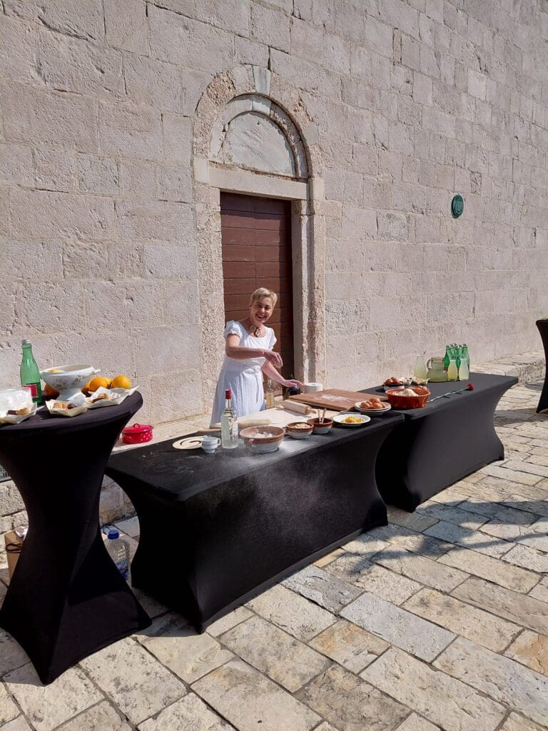 Uz priču o tradiciji i recepturi jedne od najpoznatijih hrvatskih autohtonih slastica, slovenski gosti upoznali su dio rapske gastronomske baštine, a mnogi su prvi put imali priliku vidjeti kako nastaje ova stoljetna delicija.