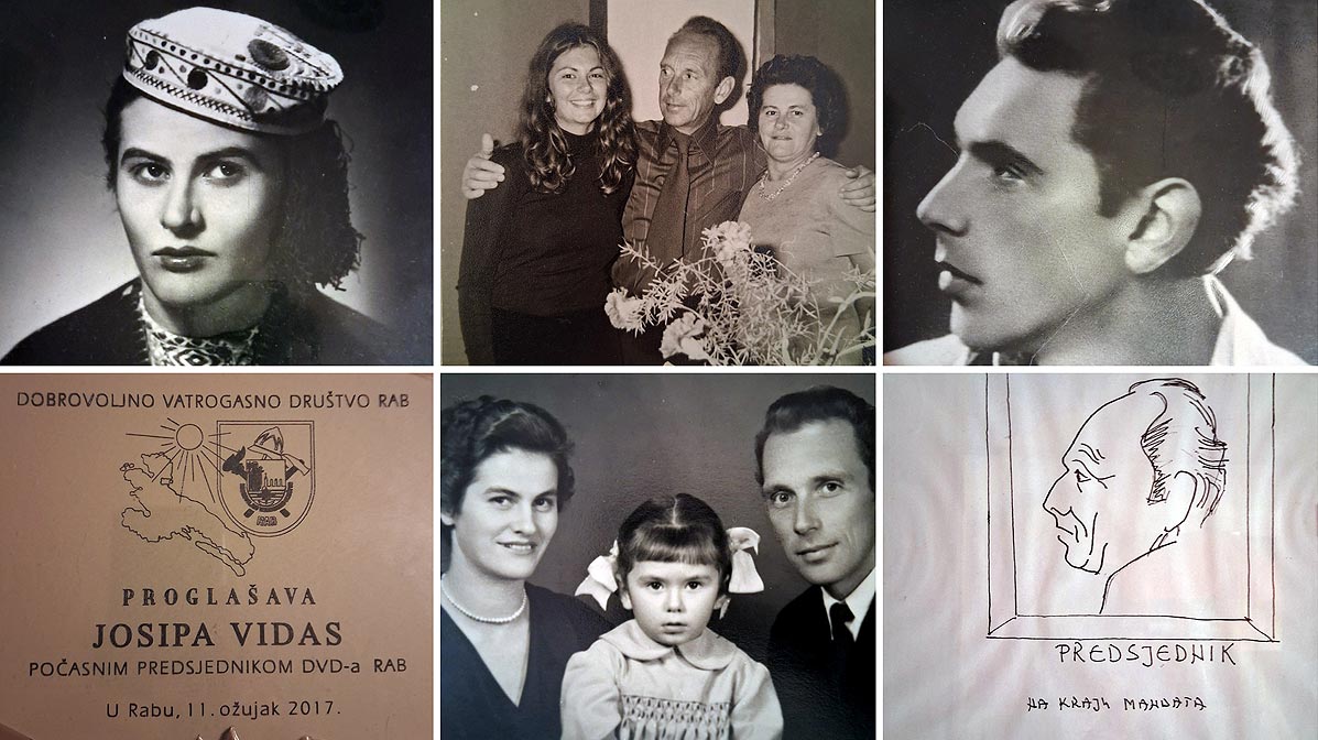 Da, moji roditelji su moj ponos; moja mama Marica, koja je bila vridna i samozatajna žena, držala je tri kantuna kuće, uz svoj posao u Općini Rab bila je i društveno aktivna u AFŽ Raba, predsjednica društva Naša Djeca Raba, uvik spremna pomoć i žrtvovat se za druge. Zahvaljujući njoj, moj tata Joško svim srcem i dušom mogao se posvetit dobrovoljnom vatrogastvu u domovini i šire: organizirat svi oni susreti i izleti vatrogasaca, poznate rapske maškare uz Jura Piškanca, za kojega su tekstove pripremali upravo u DVD-u . U vatrogasnom domu je postojala bilježnica u koju su se od Pepelnice pa do idućeg Jura Piškanca zapisivale sve anegdote i razne otočke “gluposti” koje bi se u godini dana događale na Rabu.