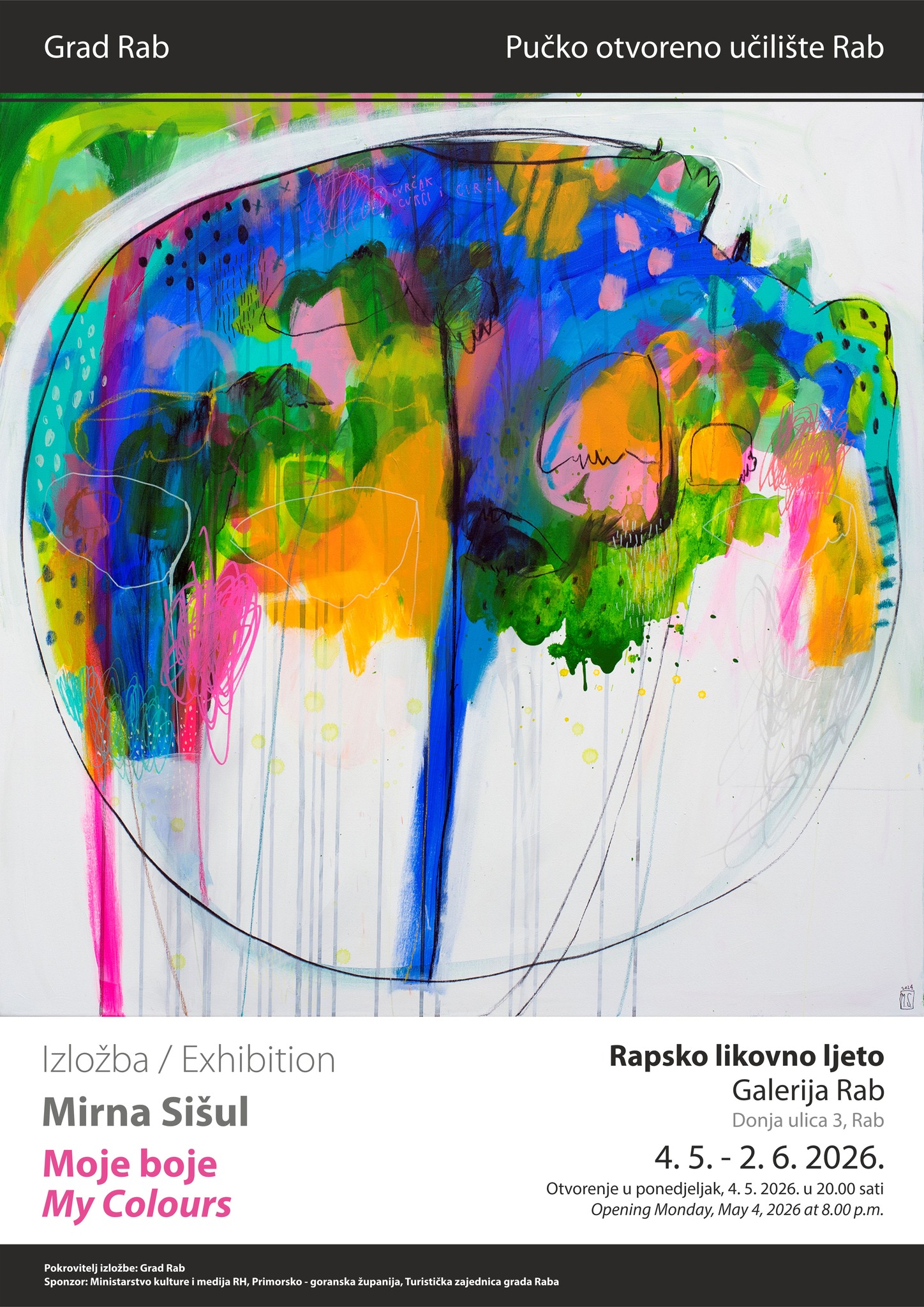 U Galeriji Rab u ponedjeljak, 4. svibnja 2026. u 20.00 sati otvara se samostalna izložba poznate riječke umjetnice Mirne Sišul pod nazivom Moje boje.