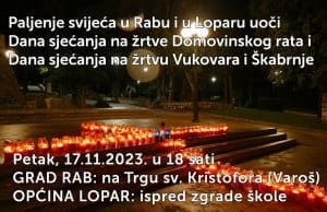 Pozivamo sve žitelje otoka Raba da se u petak, 17.11.2023. godine u 18 sati pridruže zajedničkom paljenju svijeća u znak sjećanja na sve poginule...
