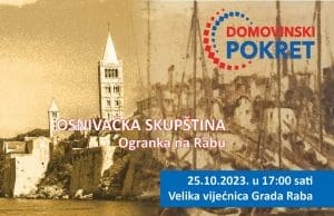 Danas, u srijedu 25. listopada 2023., s početkom u 17.00 sati, u Velikoj vijećnici Grada Raba bit će održana Osnivačka skupština Domovinskog pokreta Ogranka...