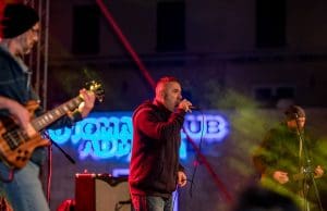 Doduše ovogodišnji raspored adventskih kućica s ugostiteljskom ponudom grupiranih na suprotnom kraju Trga Municipium Arba u odnosu na pozornicu, nužno stvara prazninu između benda...