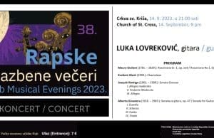 U četvrtak, 14. rujna u 21.00 sati, u crkvi sv. Križa koncert će u okviru programa 38. Rapskih glazbenih večeri održati mladi hrvatski gitarista...